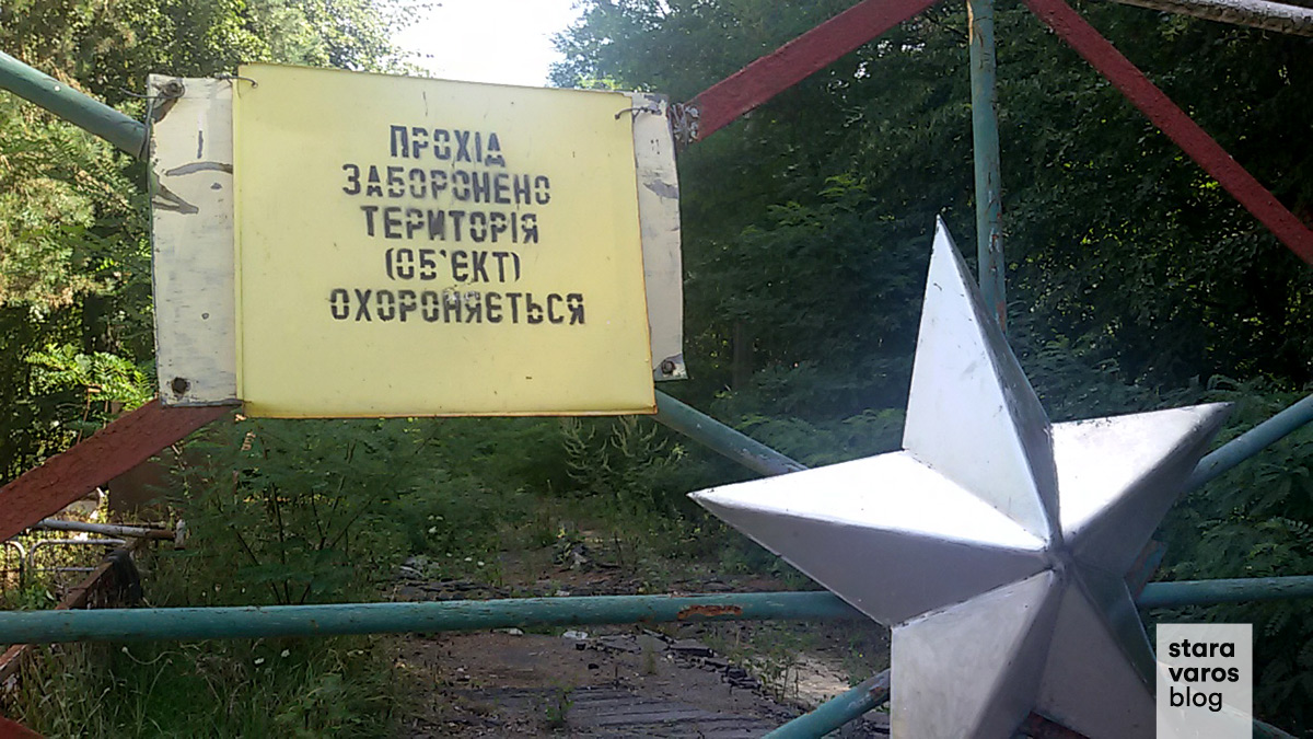 Προσεγγίζοντας τη στρατιωτική περιοχή, συναντήσαμε μια σκουριασμένη πόρτα από χάλυβα με τα σοβιετικά αστέρια σε αυτή. Ο οδηγός μου είπε πως όταν το «Duga-3» ήταν σε λειτουργία, ήταν αδύνατο να βρεθεί κάποιος μπροστά σε αυτές τις πόρτες, καθώς η ασφάλεια ήταν εξαιρετικά υψηλή. Περίπου 1.500 στρατιωτικοί, επιστήμονες και άλλοι εργάστηκαν εδώ. Τη στιγμή της επίσκεψής μου, υπήρχε μόνο ένας φρουρός που μου φάνηκε να είναι υπεύθυνος για όλους τους χώρους.
